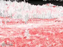 Objects with higher temperatures are shown in a bright reddish-brown color.
