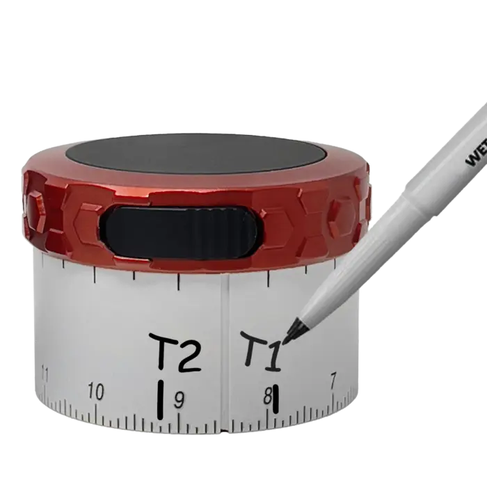 Easily wipe the markings off the dial face and repeat. As an alternative the dial is the same width as cellophane tape so your target marks can be recorded on tape and easily removed as well. To make your XTR scope even faster check out the custom Throw Lever!