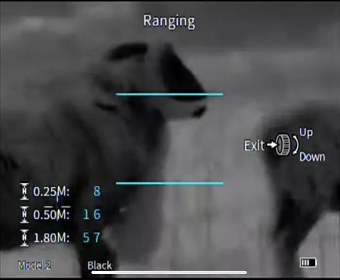 Menu-selectable fixed height bars help you determine the distance of far targets.