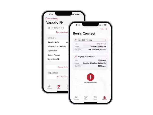 The Veracity PH pairs with the new-and-improved BurrisConnect app to create and upload custom ballistic profiles. The BurrisConnect app allows hunters to create rifle profiles and input environmental factors for their hunt. The app uses custom ballistic calculators to help hunters precisely dial their turrets for an accurate shot.
