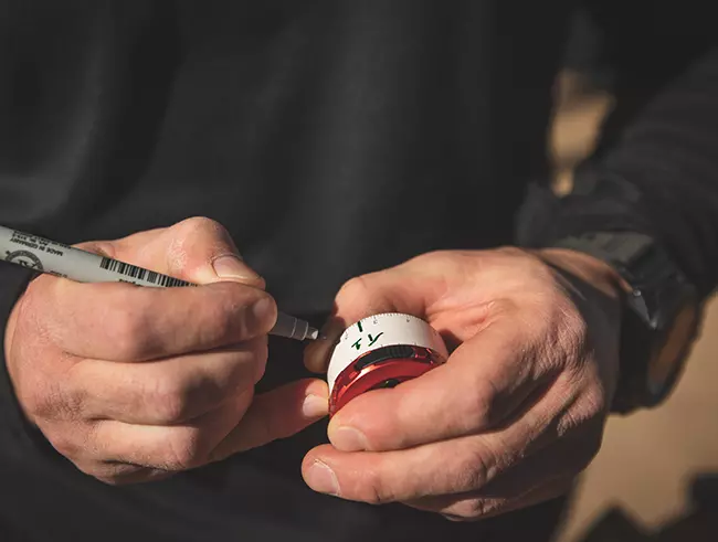 Our Quick Detach Race Dial elevation turret features a "whiteboard" style coating. Using a marker, shooters can mark each target's click value on a given stage.